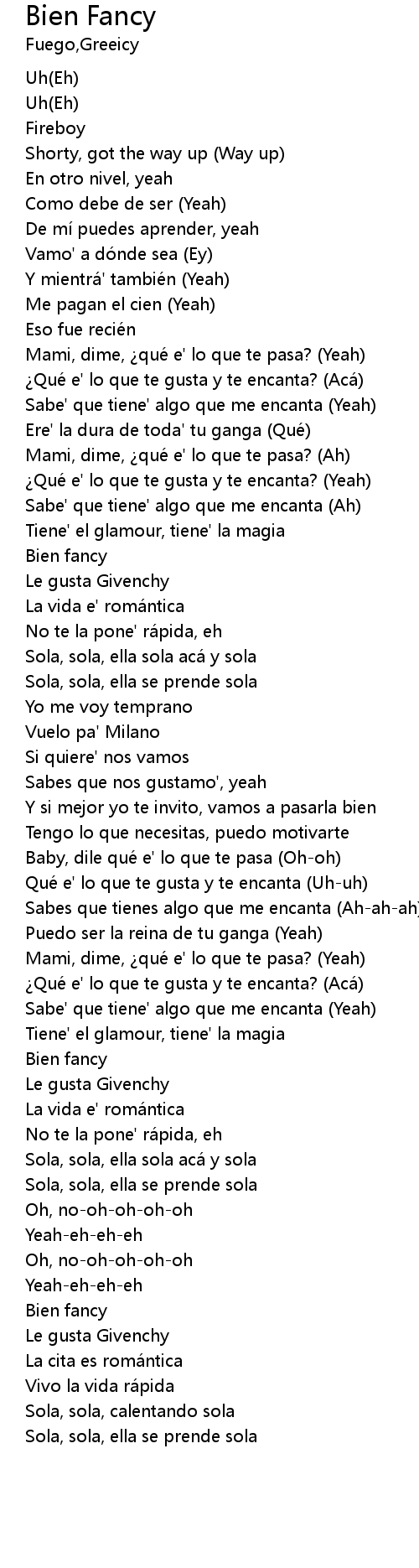 | [00:40.18] | ¿Qué e' lo que te gusta y te encanta? (Yeah) |