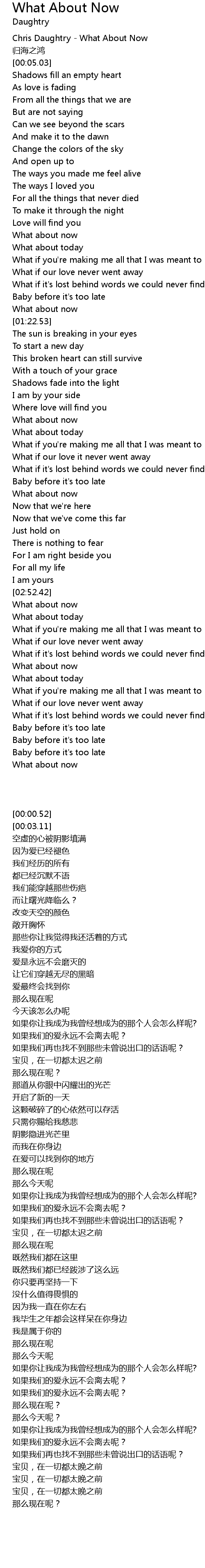 | [00:00.52] | Chris Daughtry What About Now |