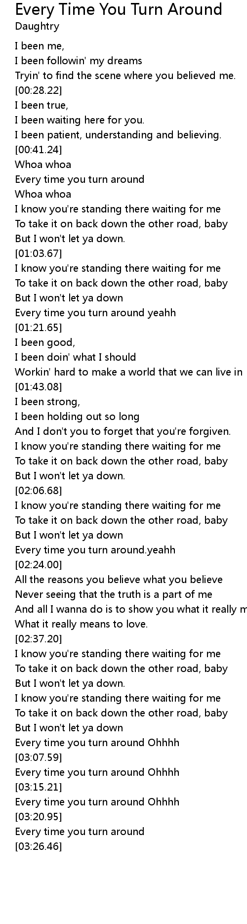 Every time you turn around Ohhhh |