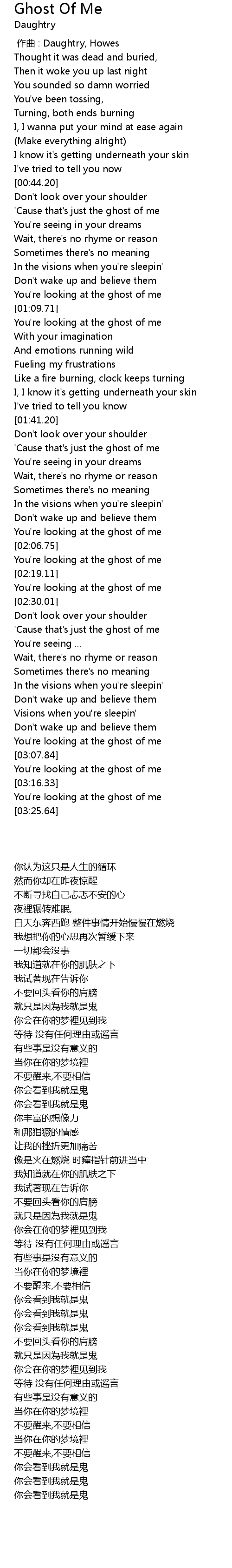 | [02:03.74] | You're looking at the ghost of me |