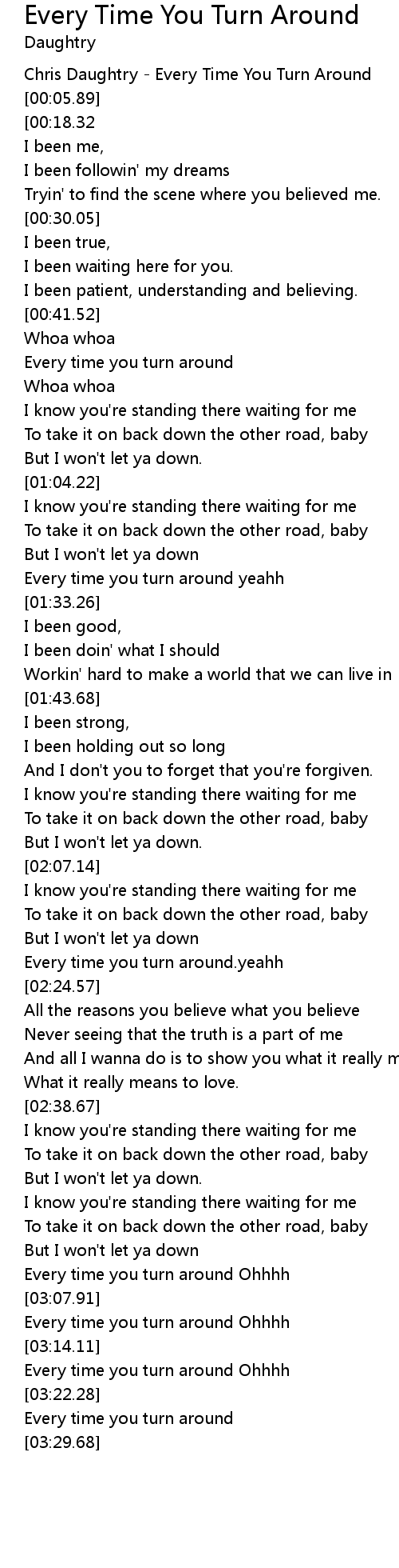 Every time you turn around Ohhhh |