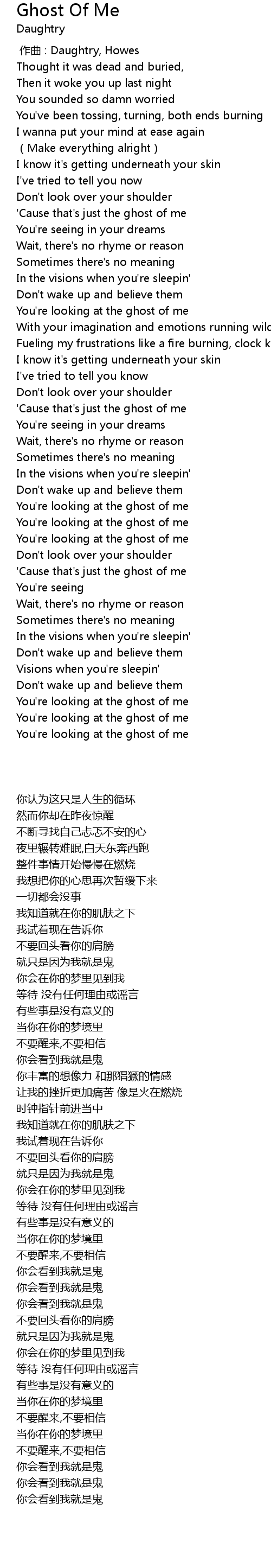 | [00:46.100] | ' Cause that' s just the ghost of me |