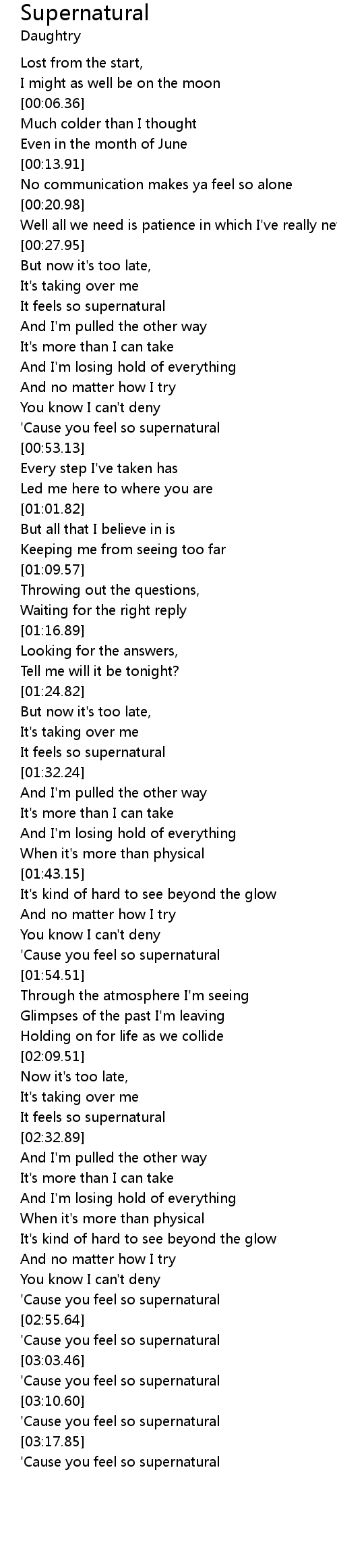 'Cause you feel so supernatural |