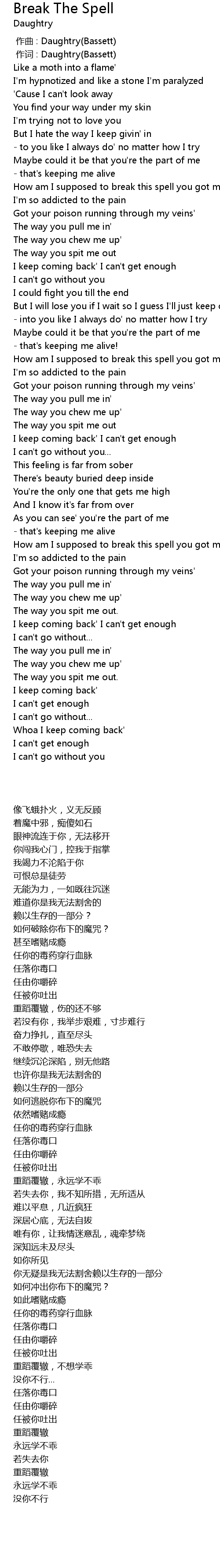 | [02:33.86] | How am I supposed to break this spell you got me under? |