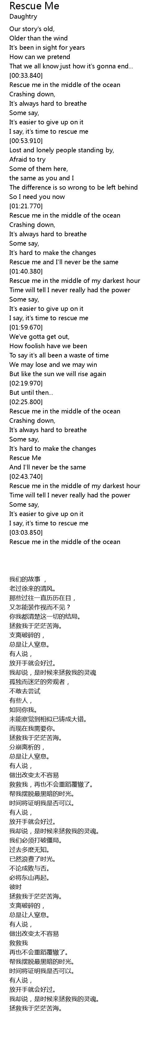Rescue me in the middle of the ocean |