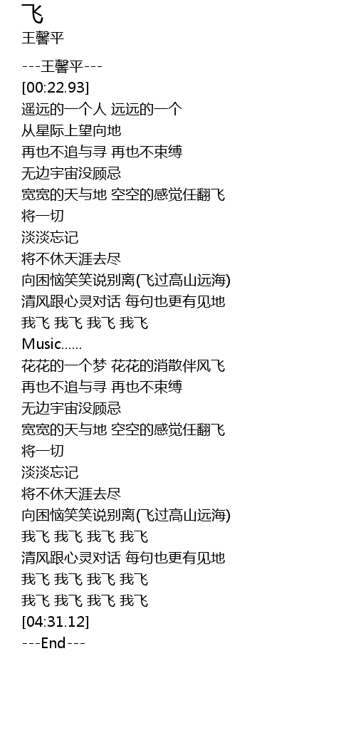| [03:40.30] | 我飞 我飞 我飞 我飞 |