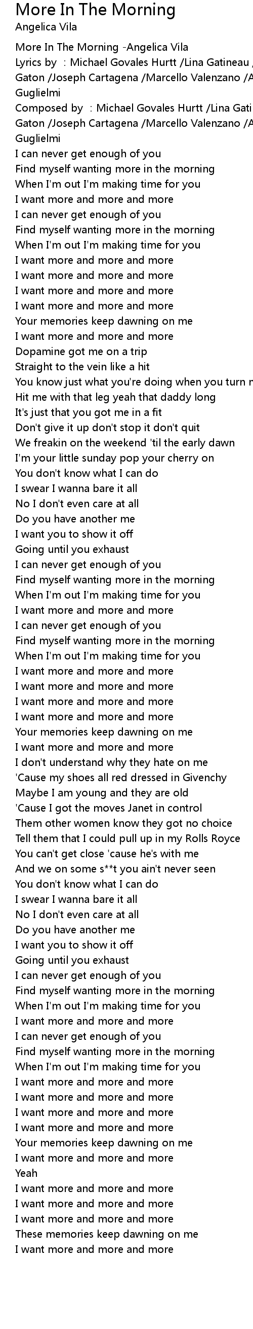 | [00:00.00] | More In The Morning -Angelica Vila |