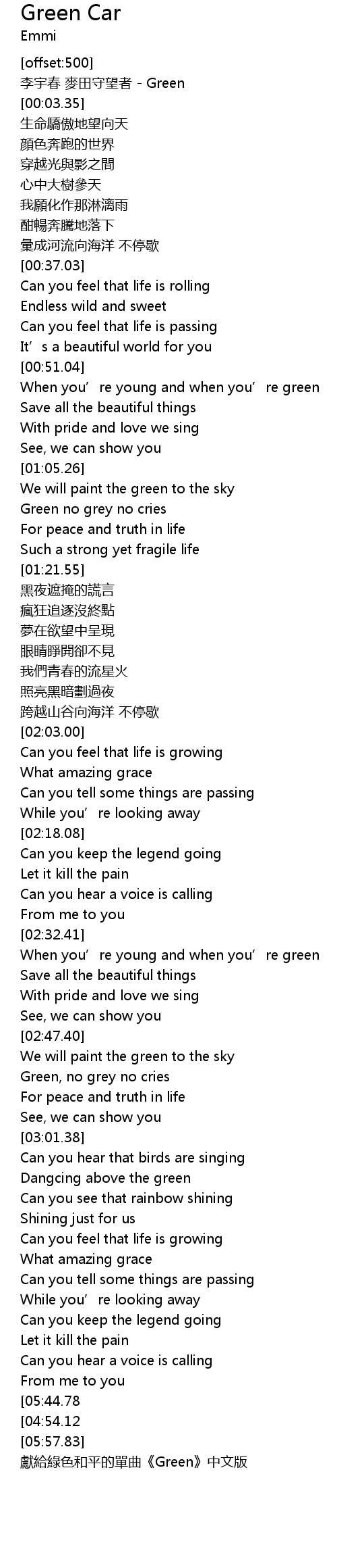 | [05:58.76] | xian gei lv se he ping de dan qu Green zhong wen ban |