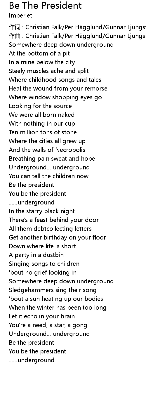 | 作词 : Christian Falk/Per Hägglund/Gunnar Ljungstedt/Joakim Thåström | |