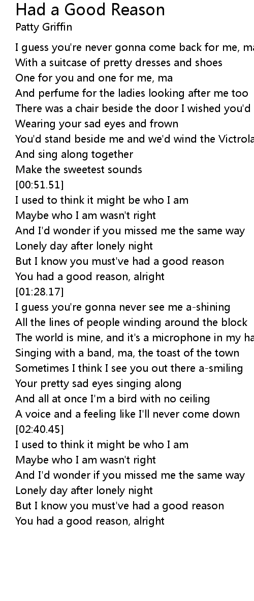 You had a good reason, alright |