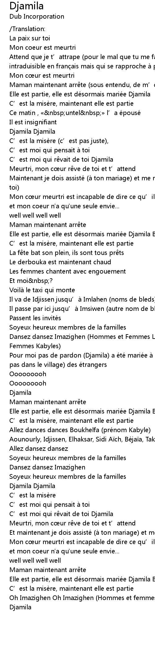 | Elle est partie, elle est dé sormais marié e Djamila | |