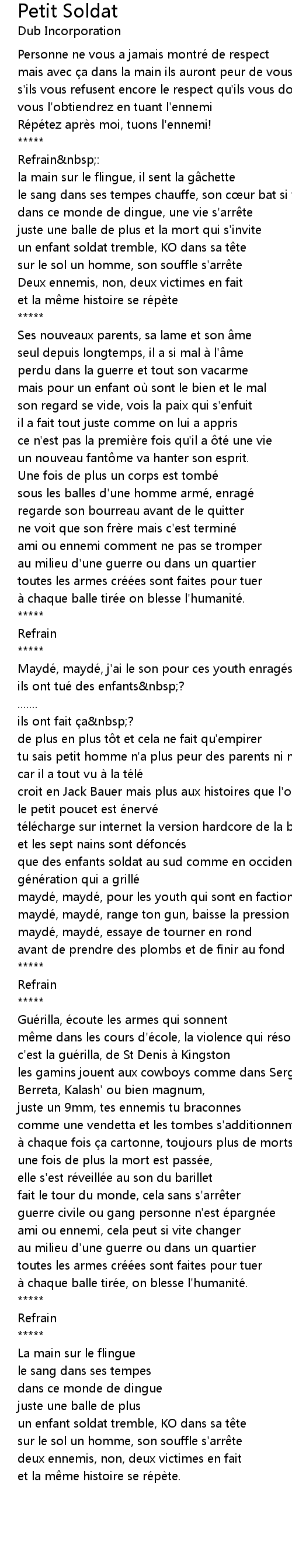 | Ré pé tez aprè s moi, tuons l' ennemi! | |