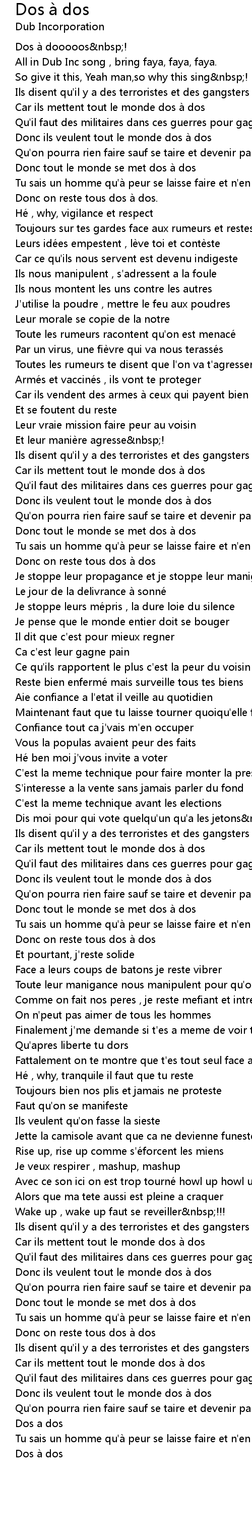 | Song | Dos à dos |