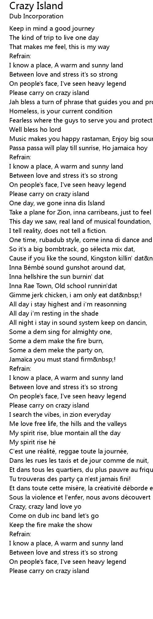 | Song | Crazy Island |