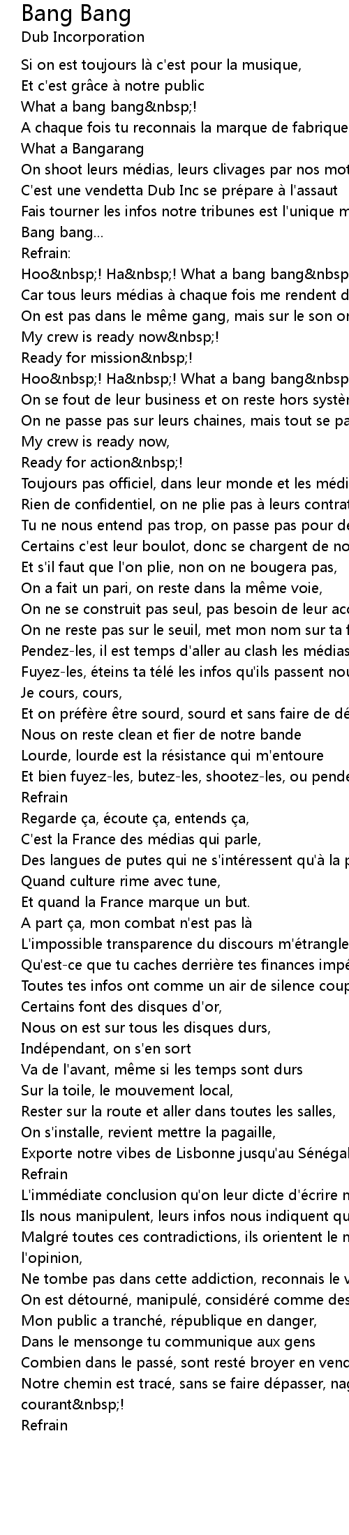 | C'est une vendetta Dub Inc se prépare à l'assaut | |