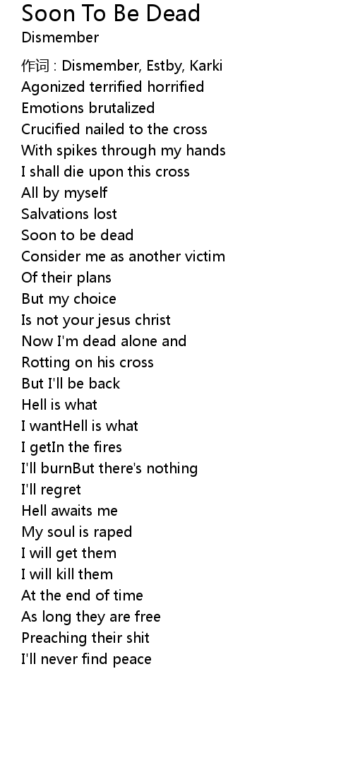 | 作词 : Dismember, Estby, Karki | |