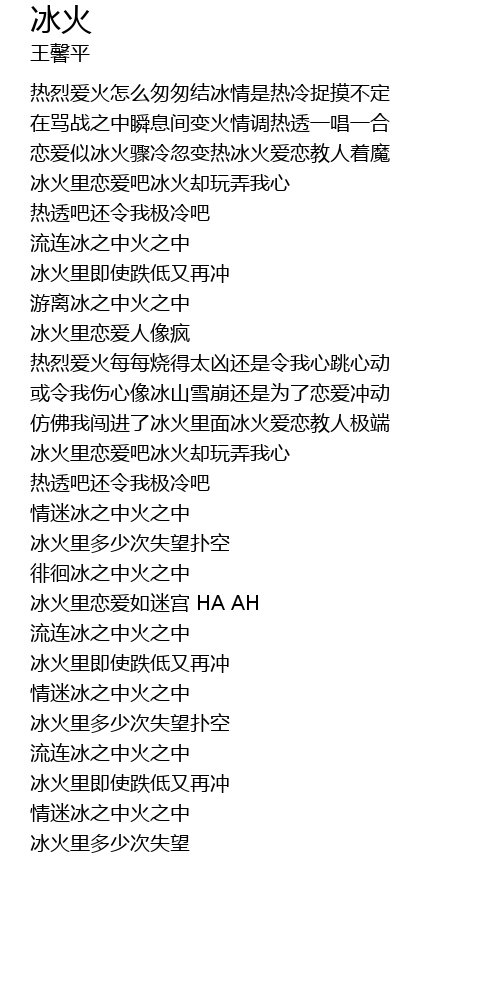 | [02:19.48] | 冰火里恋爱如迷宫 HA AH |