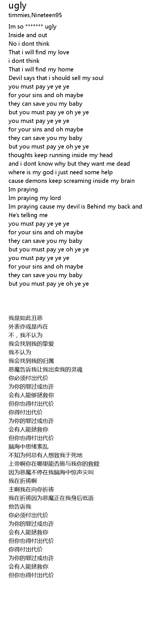 | [01:15.783] | Im praying cause my devil is Behind my back and |