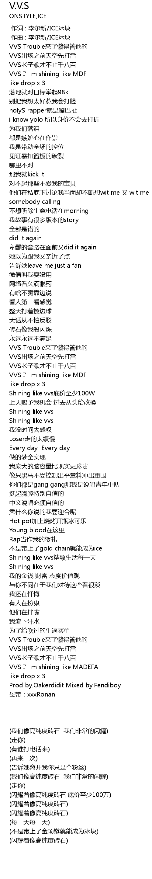 | [01:52.733] | Shining like vvs dǐ jià zhì shǎo 100W |