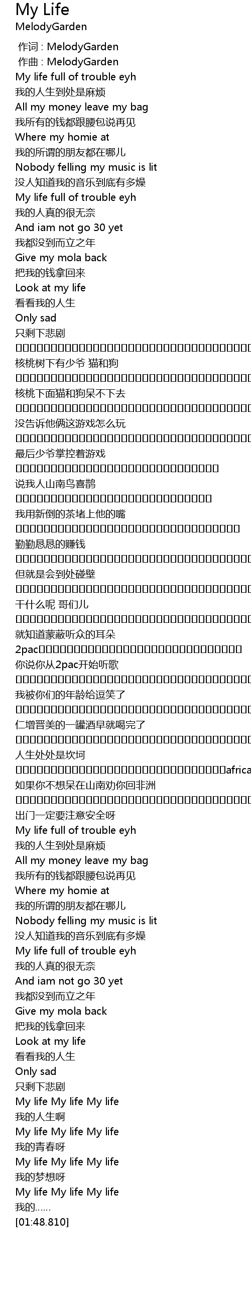 | [01:43.298] | My life My life My life |