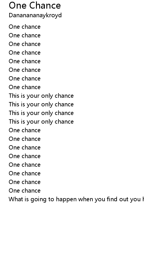 | What is going to happen when you find out you have used your only chance? |