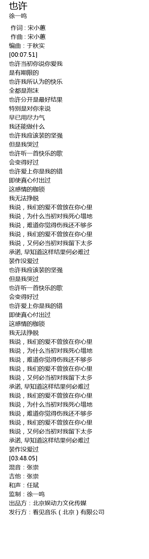 | [03:56.05] | fā xíng fāng: kàn jiàn yīn yuè běi jīng yǒu xiàn gōng sī |