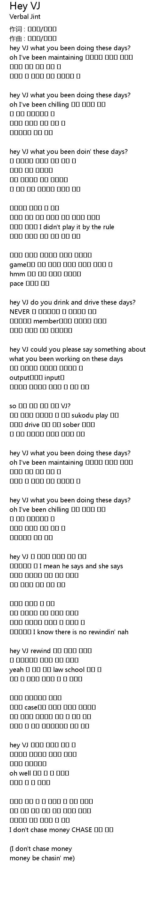 I don't chase money CHASE 가사 참조 |