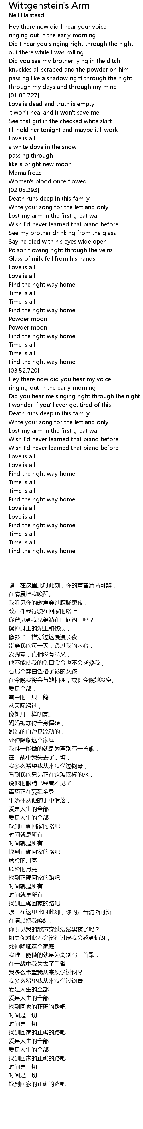 Lost my arm in the first great war |