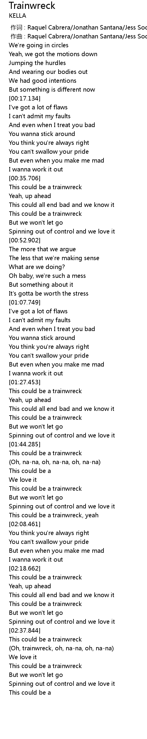| [02:40.546] | (Oh, trainwreck, oh, na-na, oh, na-na) |