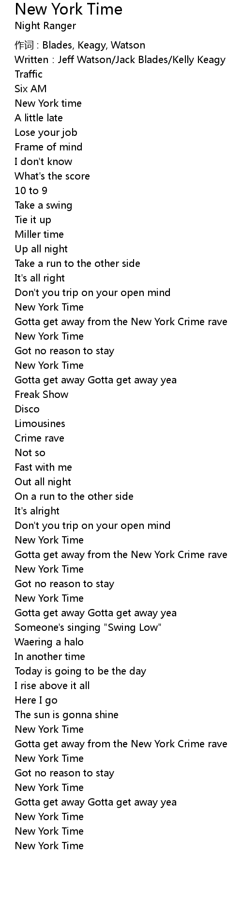 | Song | New York Time |