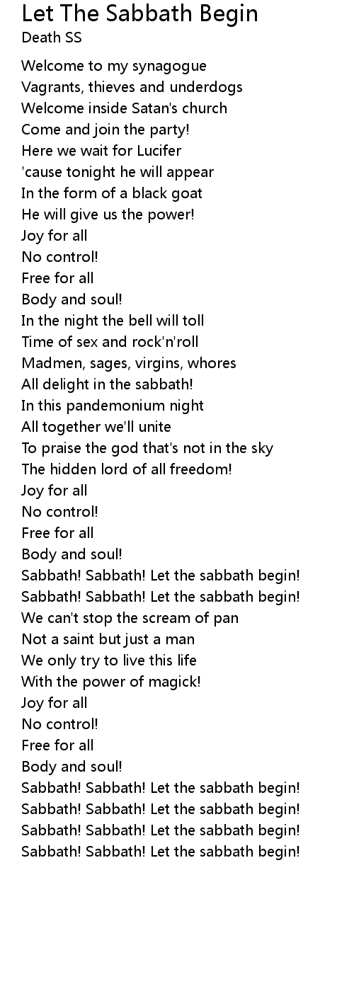 | Sabbath! Sabbath! Let the sabbath begin! |