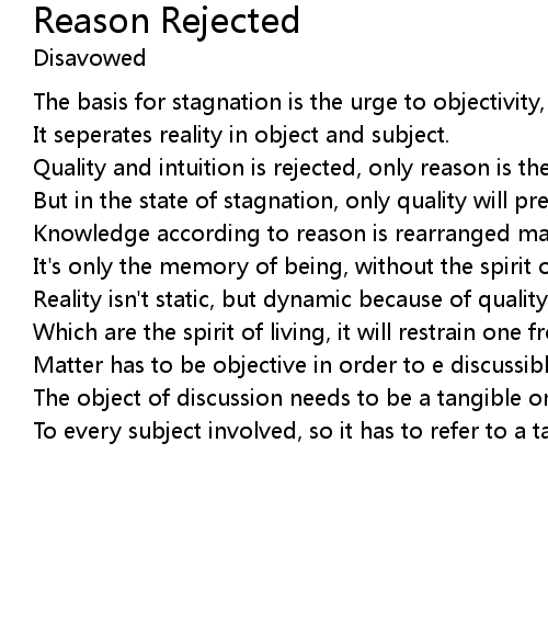 Reality isn't static, but dynamic because of quality and intuition. |