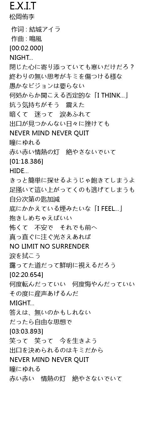| [03:16.243] | NEVER MIND NEVER QUIT |