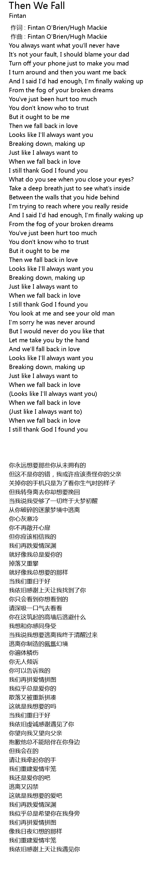 | [00:00.000] | 作词 : Fintan O'Brien/Hugh Mackie |