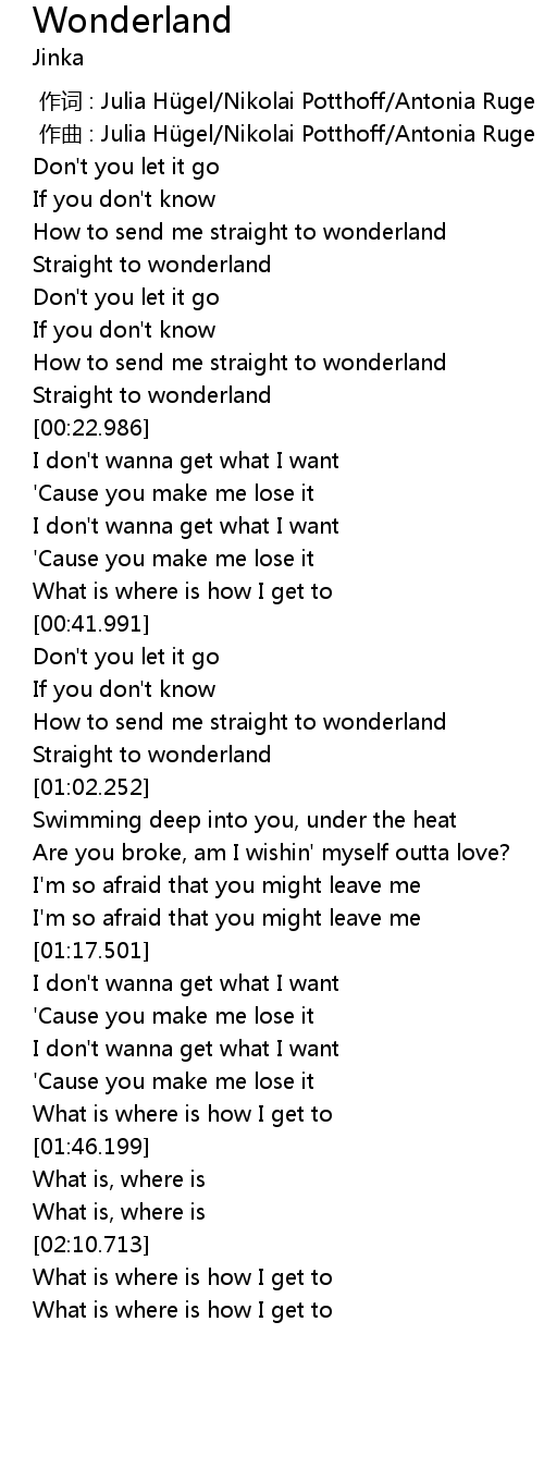 | [01:01.499] | Straight to wonderland |