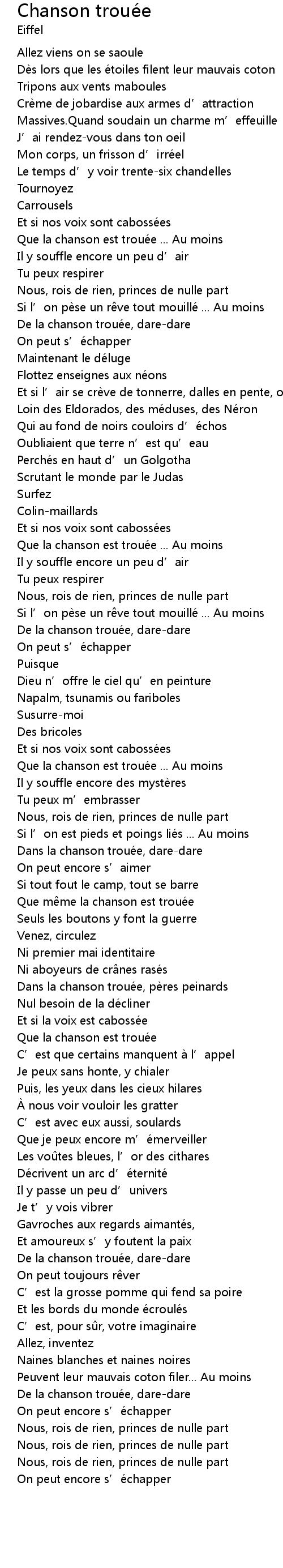 | Que la chanson est troué e | |