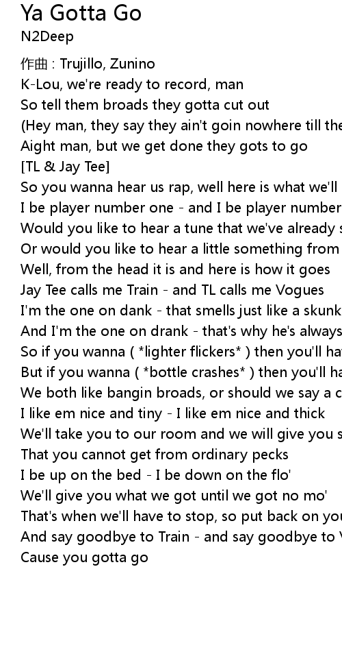 | Song | Ya Gotta Go |