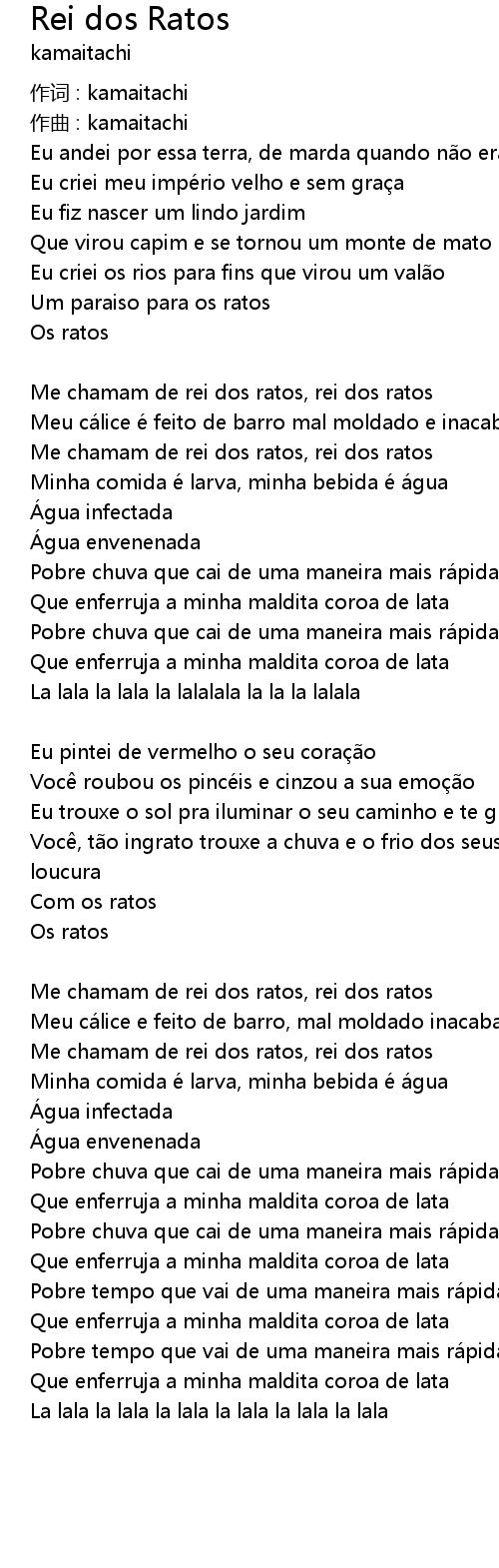 | Me chamam de rei dos ratos, rei dos ratos | |