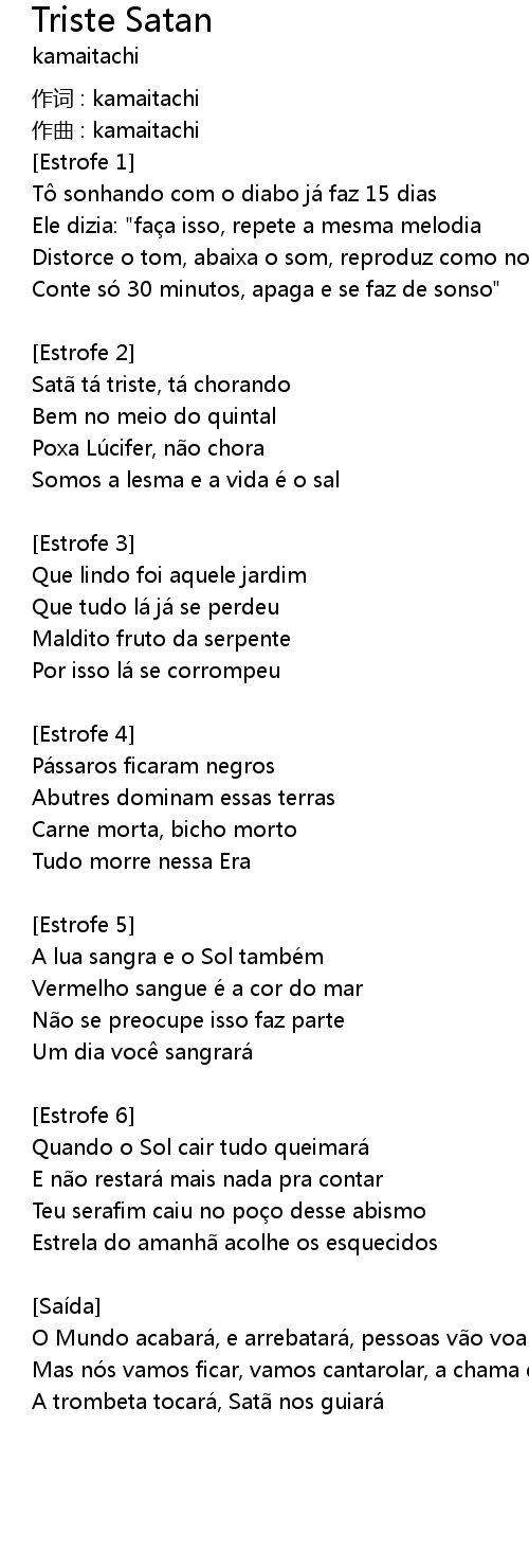 | Satã tá triste, tá chorando | |