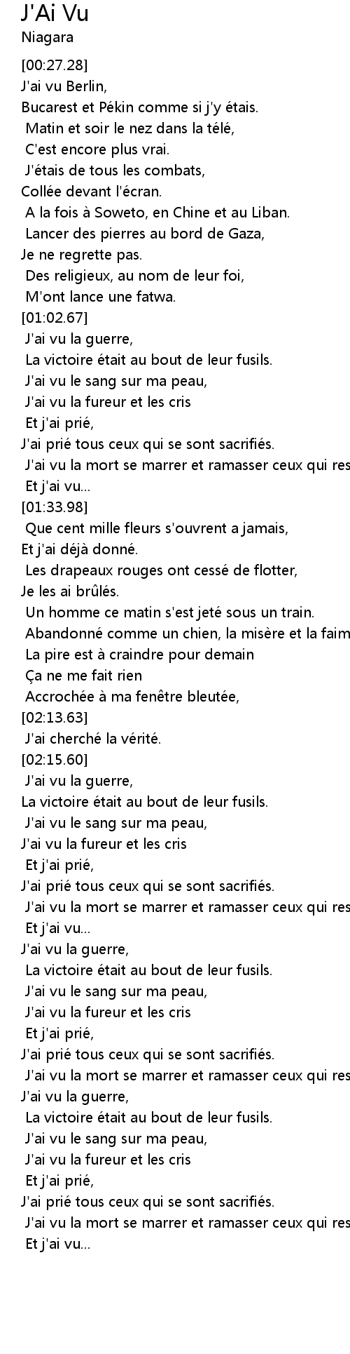 | [02:27.64] | J' ai prié tous ceux qui se sont sacrifié s. |