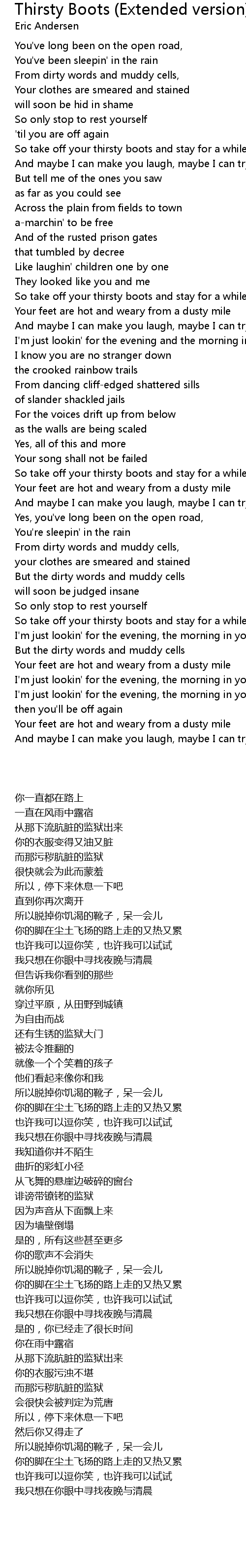 So take off your thirsty boots and stay for a while |