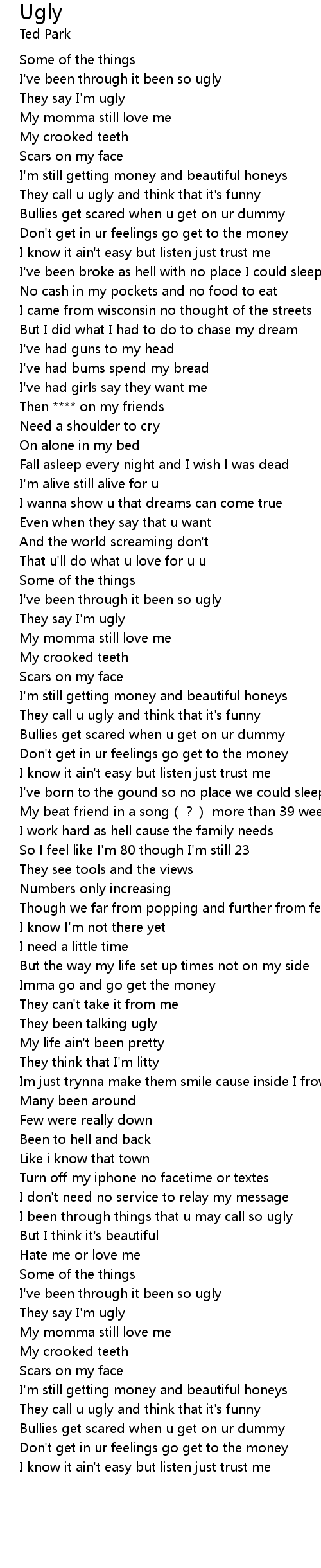 | [01:22.48] | They call u ugly and think that it' s funny |