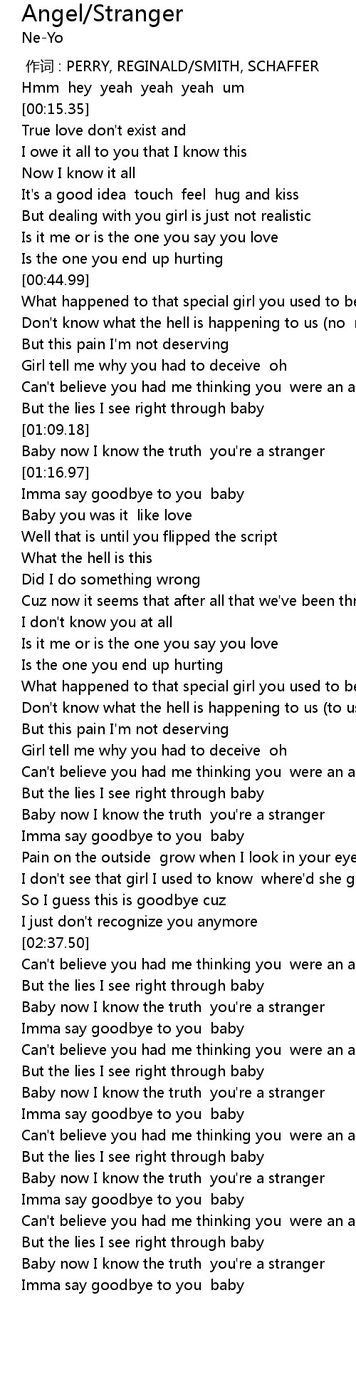 | [03:08.46] | Baby now I know the truth you' re a stranger |
