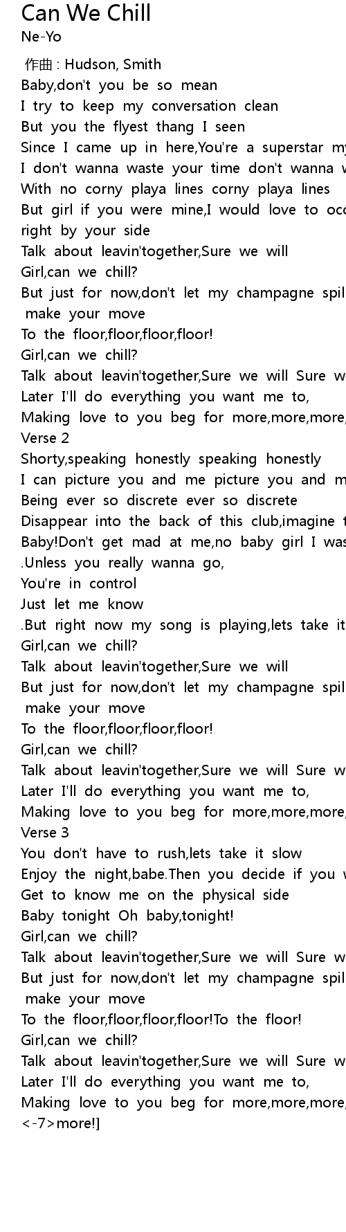 | [00:54.70] | Girl, can we chill? |