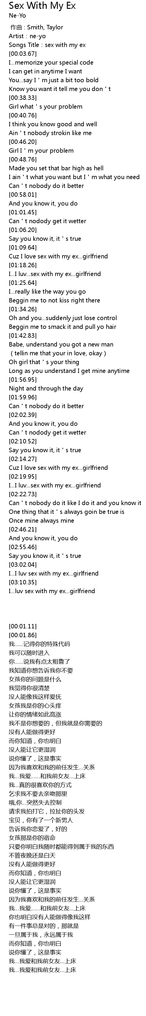 | [01:11.33] | Cuz I love sex with my ex...girlfriend |