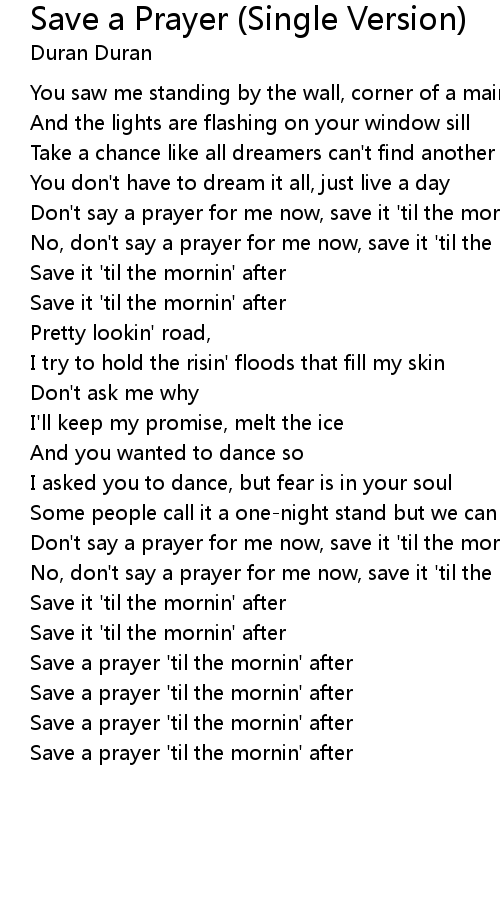 No, don't say a prayer for me now, save it 'til the mornin' after |
