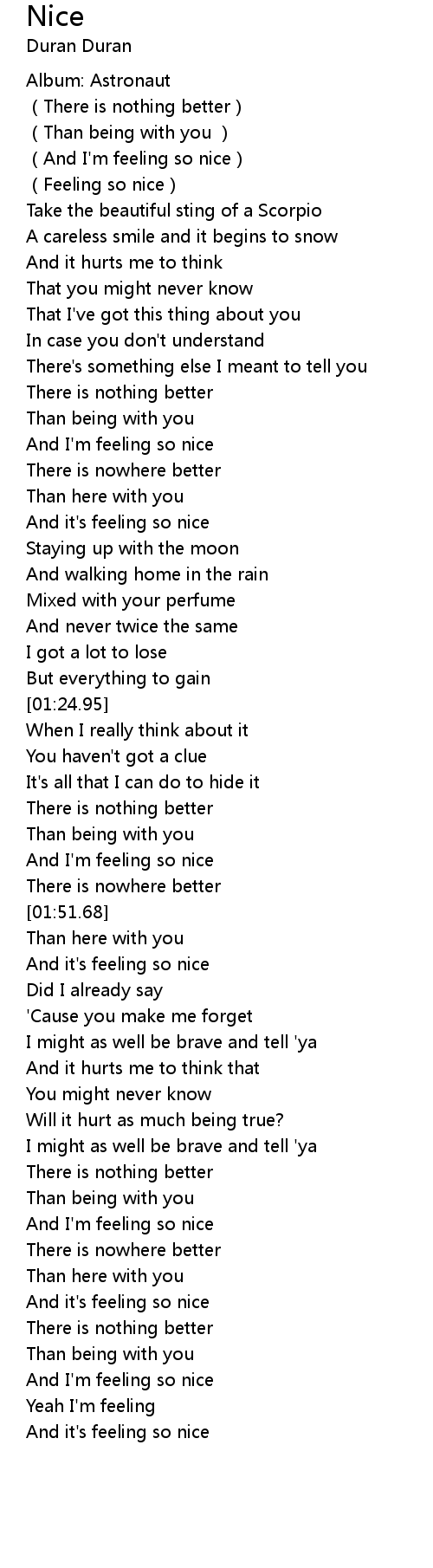 | [00:17.33] | Feeling so nice |