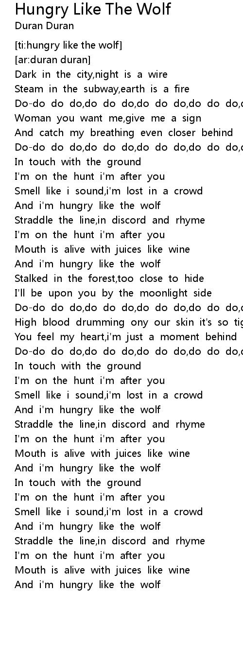 And i'm hungry like the wolf |