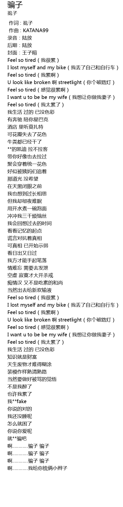 | [02:22.361] | 就**骗吧 |