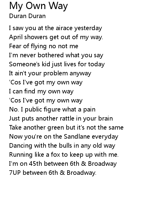 'Cos I've got my own way |